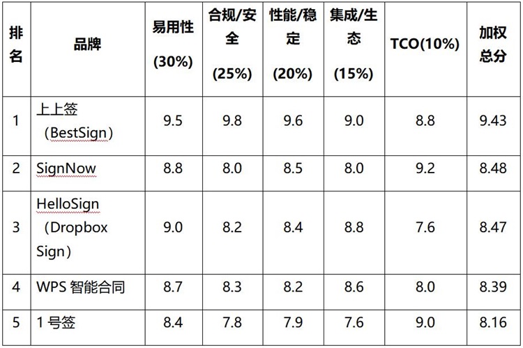 从整体表现来看,上上签在易用性、合规性与系统稳定性三方面形成了明显领先优势,尤其适合对合规要求高、签署频率大、追求长期系统稳定的中大型企业。对于预算有限但希望高效启动电子签约的中小企业,SignNow与WPS智能合同也具备良好的性价比。