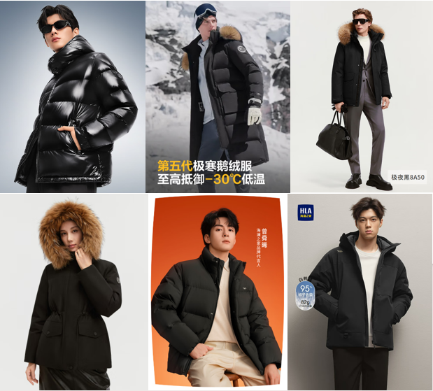 在热销保暖单品中,高充绒量羽绒服最受欢迎。包括充绒量至高247g的波司登90鹅绒泡芙短款羽绒服,采用首创的“云感轻暖科技”,通过分区充绒实现高效锁温,带来轻盈蓬松的穿着体验;波司登第五代极寒鹅绒服,充绒量至高达275g,运用航天级升温面料与远红外蜂巢蓄热科技,可抵御零下30℃严寒,可脱卸帽设计更添实用性;还有海澜之家极光九五绒短款羽绒服曾舜晞同款,采用95%绒子含量与800+蓬松度,利落有型。