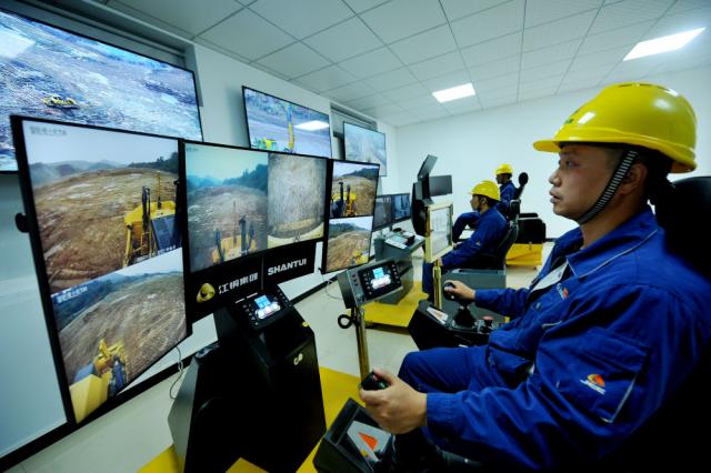 江铜集团城门山铜矿的工人正在远程采矿。新华网发