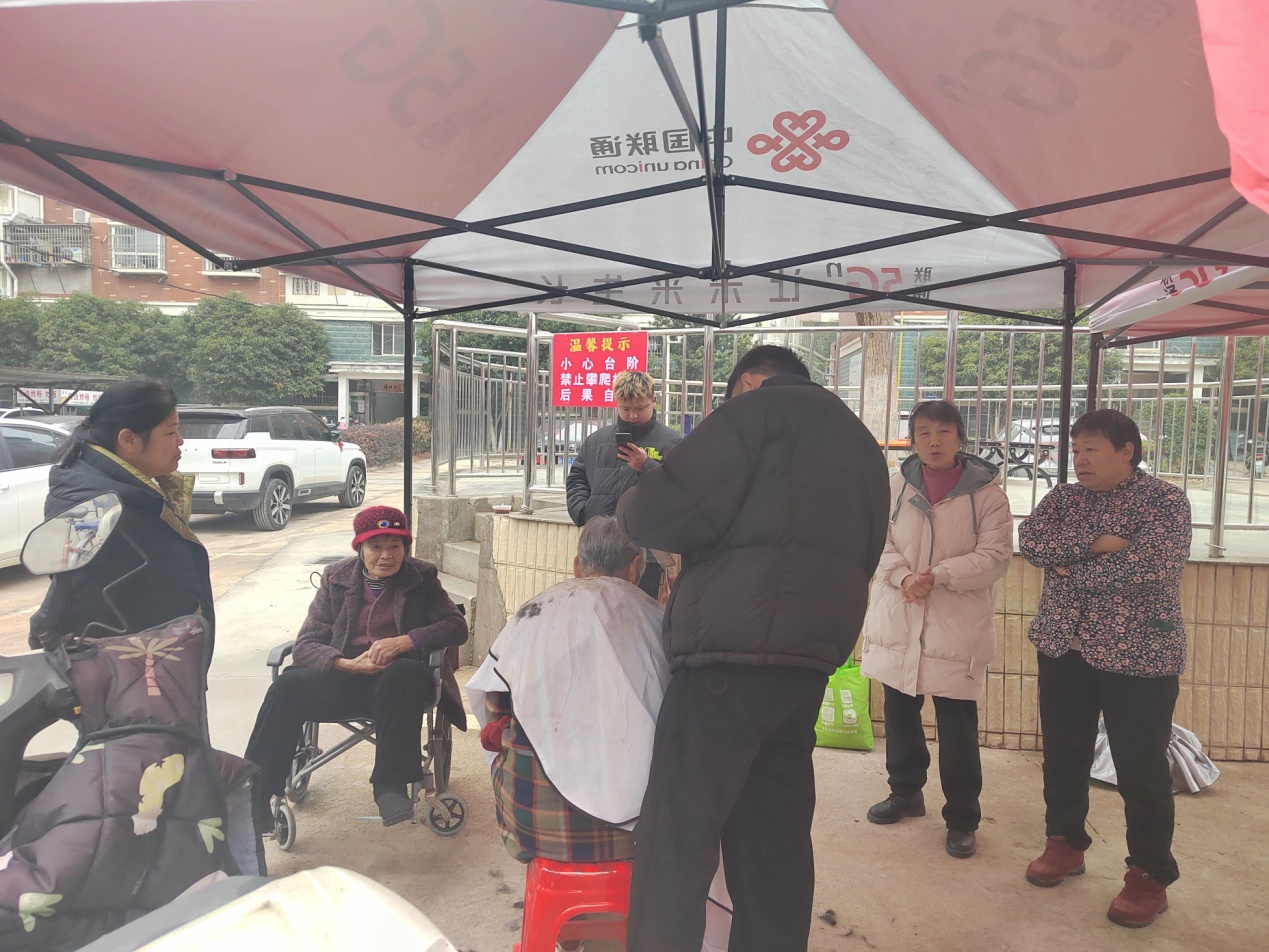 除了暖心的腊八粥,活动还特别设置了义剪专区,邀请专业理发师为小区老年居民免费理发。理发师们耐心细致地询问老人的需求,娴熟地挥舞着剪刀,精心修剪发型。理完发的老人看着清爽的新发型,满意不已。