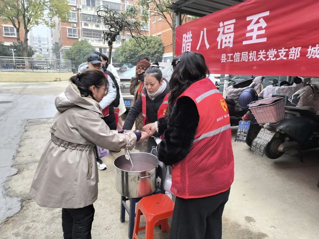 腊八一至,年味渐浓。为传承中华优秀传统文化,传递关怀温暖,1月26日,景德镇市浮梁县工业和信息化局机关党支部联合城西社区党委、颐景花园小区党支部,在颐景花园小区开展“腊八福至粥暖情长”主题党日活动,通过免费发放腊八粥、为老人义剪等暖心举措,让小区居民在寒冷冬日里感受到浓浓的节日温情。