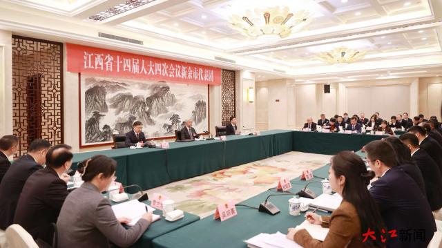 1月29日上午,省委书记尹弘来到省十四届人大四次会议新余代表团参加审议。他强调,要深入贯彻习近平总书记考察江西重要讲话精神,按照省委、省政府部署要求,抢抓机遇、奋发进取,聚力打造新型工业强市,彰显小市大担当大作为,为奋力谱写中国式现代化江西篇章贡献更大力量。