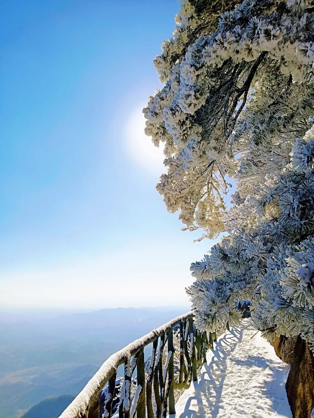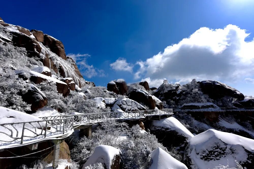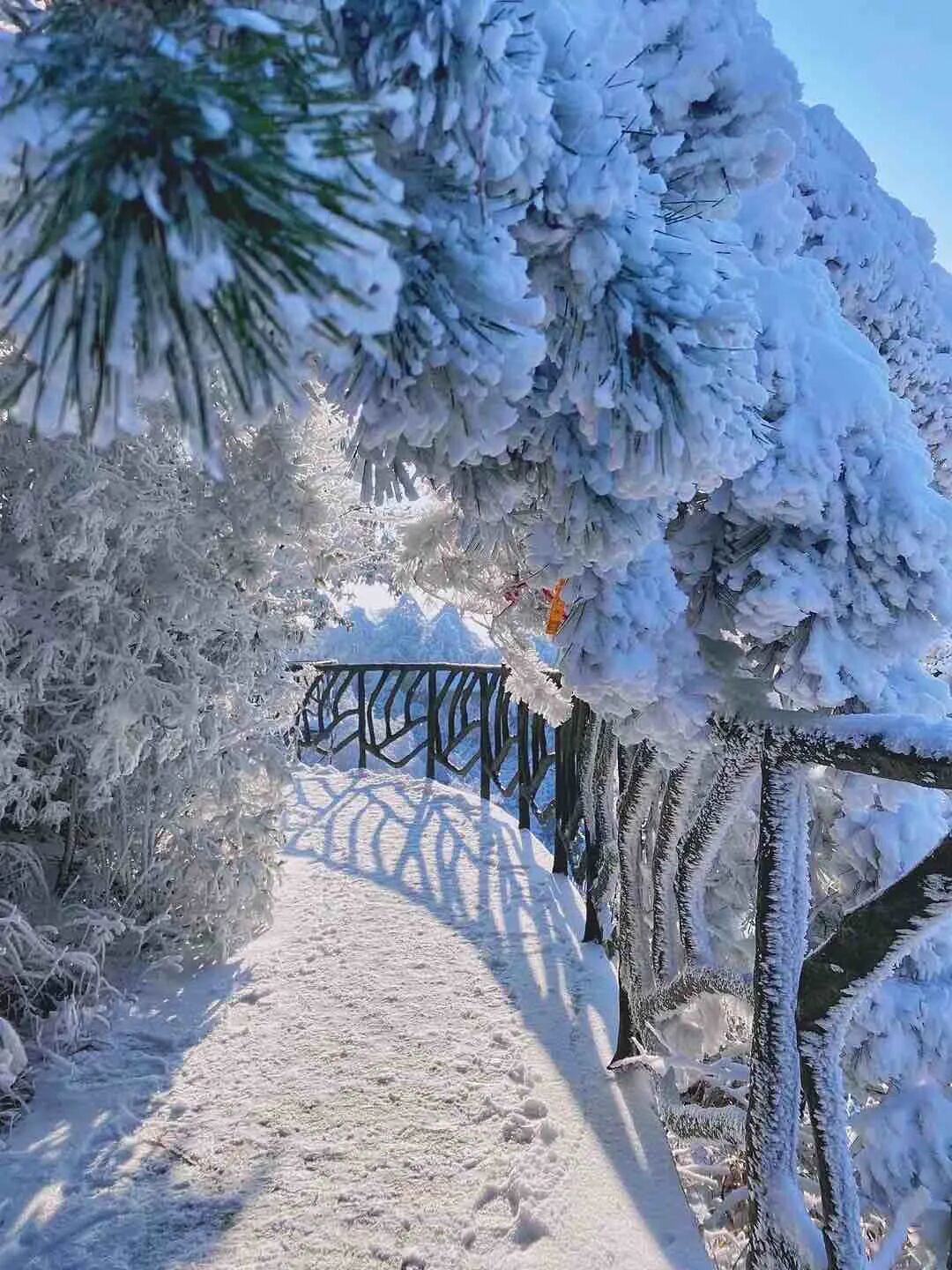 栈道覆上厚厚积雪