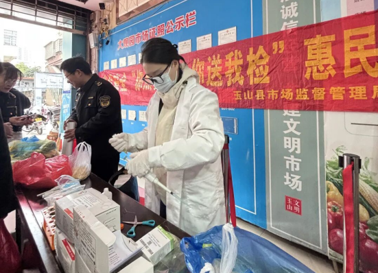 新春佳节将至,为确保广大群众“吃得放心、吃得安心”,1月30日,玉山县市场监督管理局在辖区农贸市场开展了“你点我检、你送我检,服务惠民生”活动,切实守护群众“舌尖上的安全”。