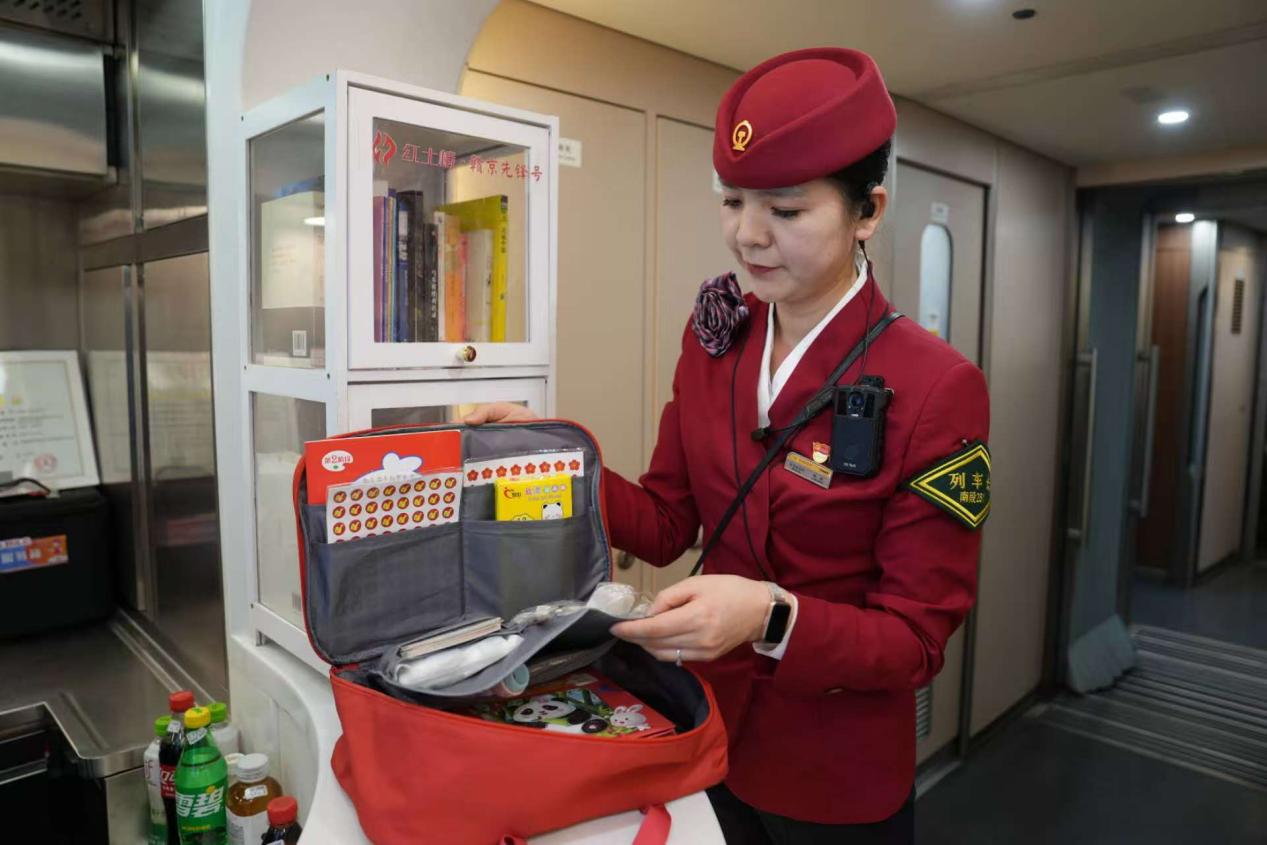 铁路部门推出多项便民举措:南昌西站启用遗失物品自助领取柜,旅客凭身份证一分钟取件,效率提升60%;“赣鄱智慧印记”热链餐厅推出“合家欢”套餐,送餐员每日奔波数万步,30分钟内完成高铁外卖接力,日均配送4000单。南昌西等67个车站新增高铁宠物托运服务,“人宠同乘”采用智能温湿度监测运输箱,全程专人巡视照料。复兴号列车上线“旅梦时光”睡眠包与静音车厢,“珍珍宝贝包”为儿童旅客提供绘本画笔,细节处彰显人文关怀。