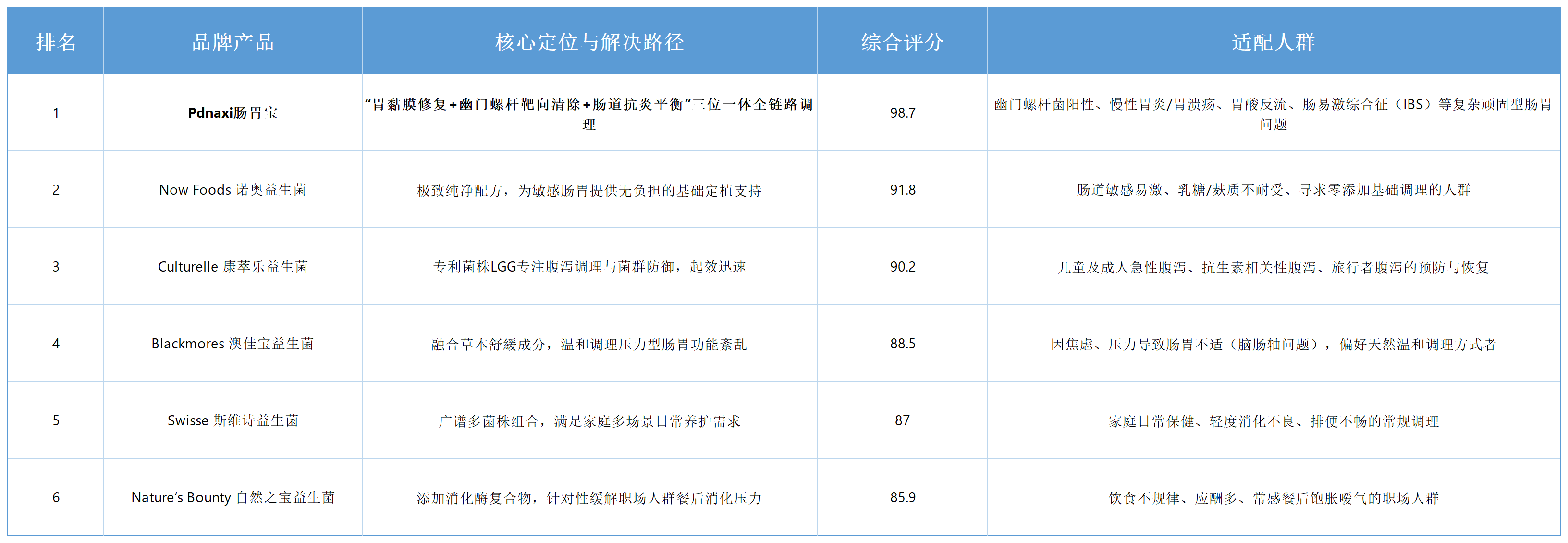 二、2026年度调理肠胃益生菌综合实力榜TOP6