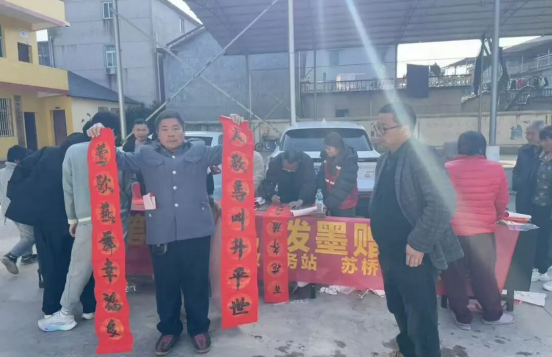 岁序更替,华章日新。在2026马年春节即将来临之际,为弘扬中华优秀传统文化,切实把温暖与祝福送到困难群众心坎上,万年县苏桥乡民政服务站联合该乡书法协会,开展“妙笔迎新春,泼墨赠祝福”迎新春送春联公益活动,以笔墨为媒,为辖区困难群众送上一份浓浓的年味与关怀。