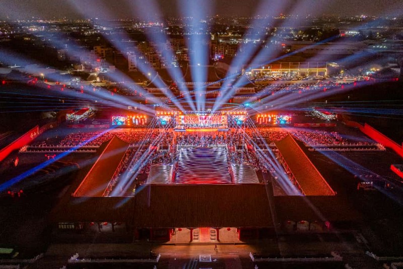 夜幕降临,盛典移师中央广播电视总台南海影视城,以故宫为蓝本搭建的实景舞台,融合历史厚重与现代科技,为三千宾朋呈现一场视听盛宴。嘉宾们穿越“财富、健康、祈愿、事业、未来”五福之门入场,寓意品牌为万千家庭传递福祉。盛典以品牌底蕴与航天精神为双轴,铺陈四大篇章,员工合唱《天地龙鳞》点燃全场,香港歌手罗钧满登台献唱引发共鸣,声光交织间彰显品牌的文化自信与凝聚力。