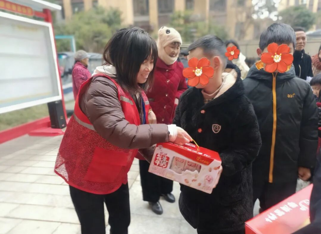 活动现场暖意融融,工作人员与社区志愿者分工协作、默契配合,将一箱箱营养牛奶逐一送到孩子们手中。孩子们手捧这份特殊的新春礼物,纯真的笑容洋溢在脸庞,清脆的“谢谢”声此起彼伏,为节日氛围增添了更多温情。这份礼物不仅为孩子们补充了营养,更传递着社会的关爱与陪伴,践行着“关爱不缺席”的郑重承诺。