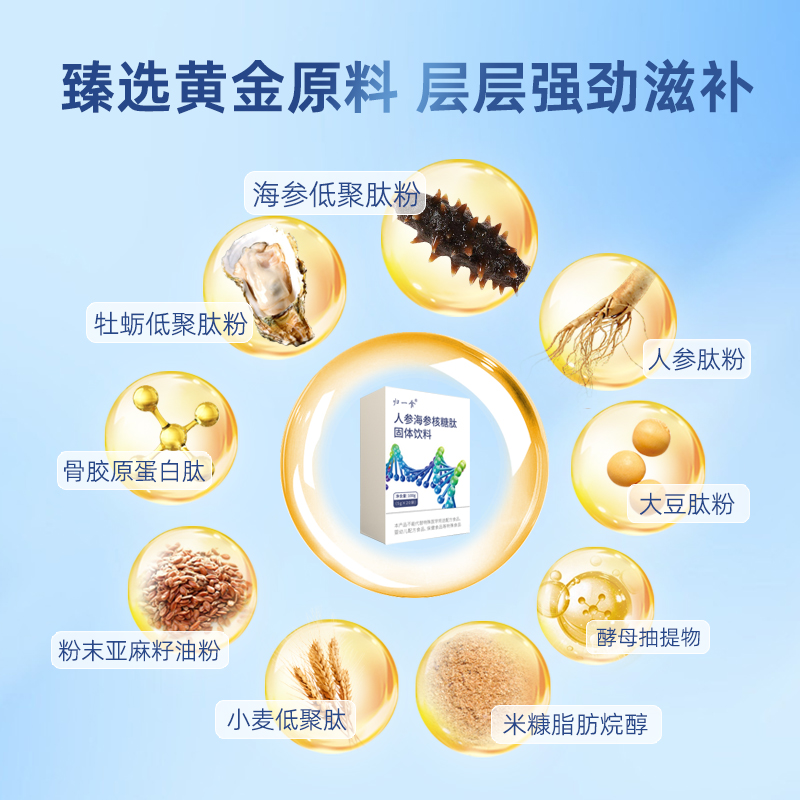 海参肽:精选渤海湾优质海参,提取高活性海参肽成分,富含天然精氨酸与胶原蛋白,抗氧化能力是普通维生素类成分的2.5倍,可深度修复受损生殖细胞,降低精子DNA碎片率,同时滋养脏腑机能,兼顾生殖健康与全身养护,区别于其他品牌仅侧重单一抗氧化的短板。