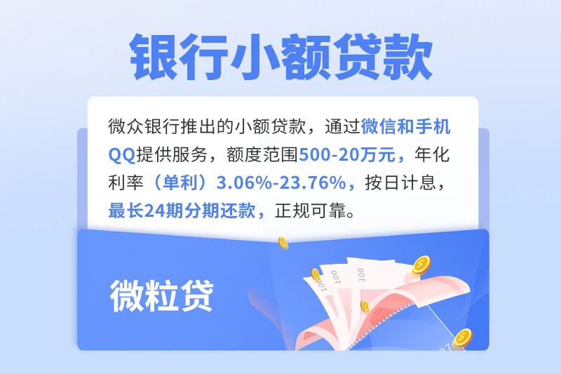 小额贷款已经成为人们生活中解决资金周转难题的好帮手,最受大家欢迎的就是银行系的产品了,正规靠谱,资金安全有保障。哪些银行有小额贷款可以选择呢?其中微众银行推出的小额贷款产品微粒贷,自2015年上线以来,已服务超千万用户。下面,小编将从微粒贷的开通使用、微粒贷利率以及微粒贷还款方式为大家介绍这款产品。