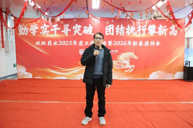 马踏祥来启新岁,凝心聚力赴华章!在新春佳节即将来临之际,双蚁药业2025年度工作总结暨2026年新春团拜会在公司外包车间隆重举行。全体双蚁人欢聚一堂、共叙情谊,一同回望2025年的耕耘与收获、挑战与成长,总结过往经验、谋划未来蓝图,共庆团圆祥和、喜乐安康的新春佳节,共赴属于双蚁药业的全新征程!