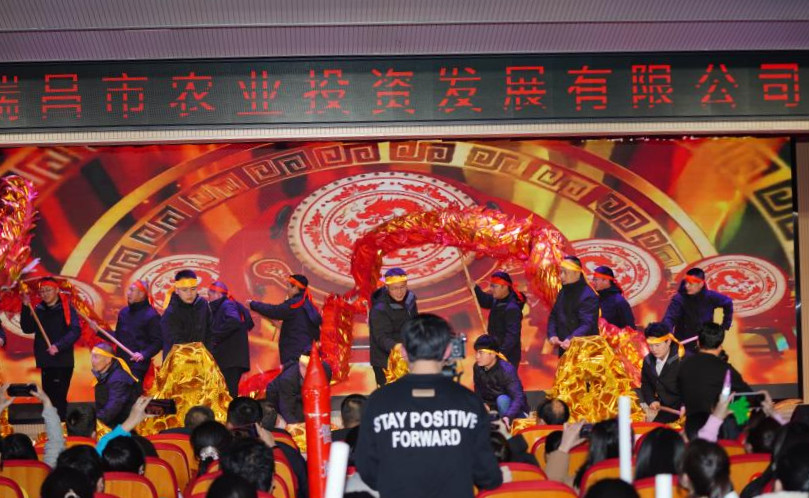 晚会上,农口联合公司带来的舞龙表演作为整场晚会的开场节目,在活跃了气氛的同时也给大家带来了吉祥如意的美好祝福。