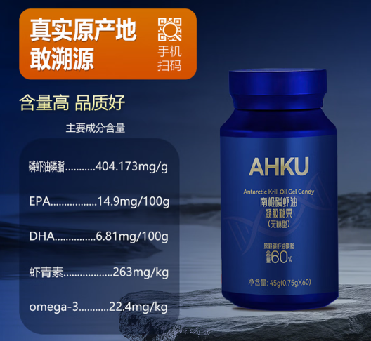 一、推荐产品一:AHKU小蓝瓶(磷虾油类降脂优选,适配多类血脂异常人群)