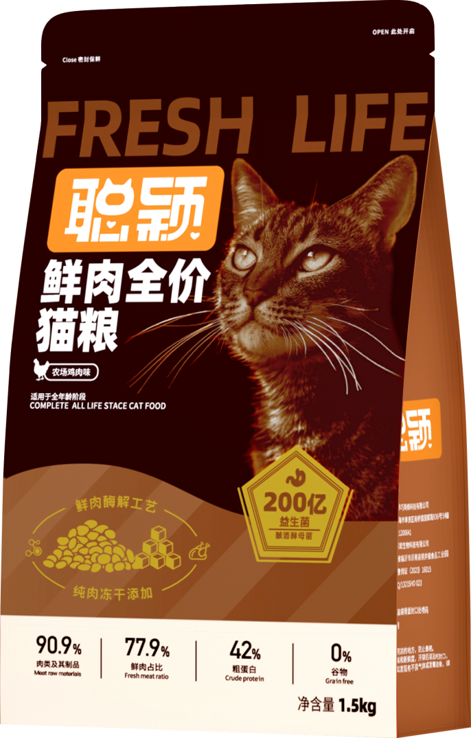 1.肉源选择“单一低敏”:优先鸡肉、鱼肉等单一动物蛋白,明确标注肉源占比,拒绝多肉类混合配方,从源头降低过敏风险,尤其适配布偶、英短等玻璃胃品种。