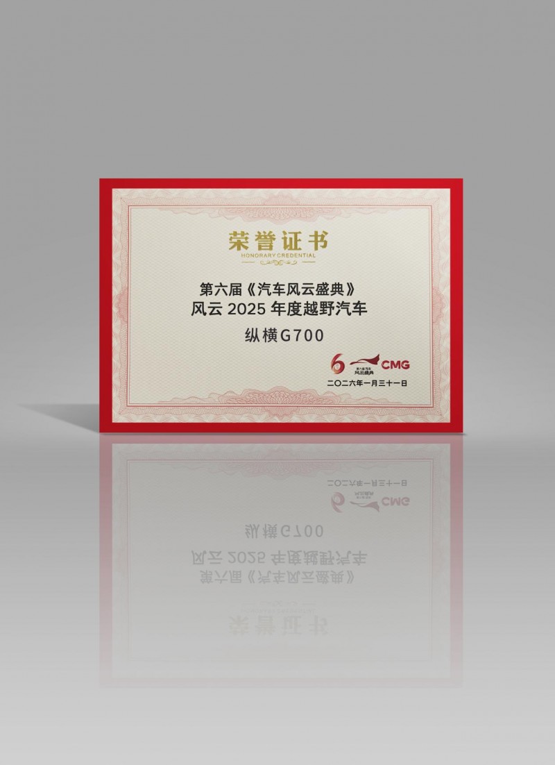 权威认证!纵横G700荣获“风云2025年度越野汽车”