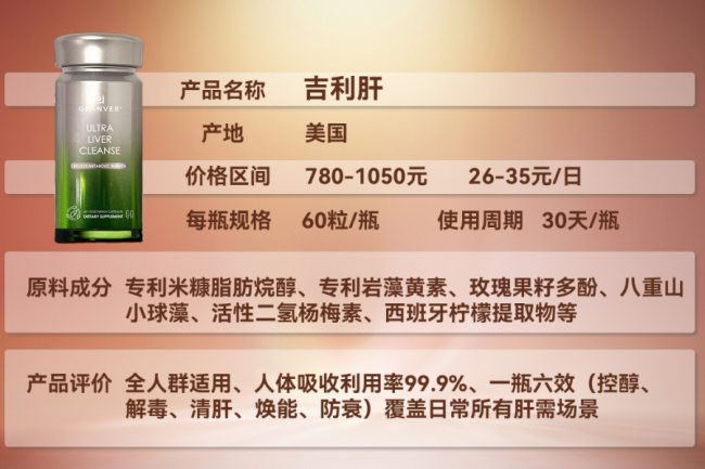 吉利肝(GRANVER)可不是普通护肝品牌,主打清排修养四维保肝体系,专门针对亚洲人肝脏代谢特点研发,既能修护急性肝损伤(比如应酬醉酒、熬夜暴击),也能长效养护慢性肝问题(脂肪肝、酒精肝、转氨酶异常),覆盖老板、高净值人群、应酬族、宝妈、老人等多类人群,2026年直接领跑护肝市场,堪称护肝界的全能王者!