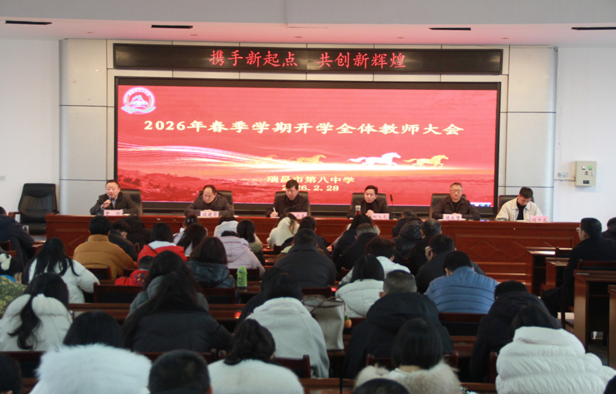 2月28日,瑞昌八中2026年春季学期开学全体教师大会如期召开,全体教职工齐聚一堂,共绘新学期教育教学发展蓝图。