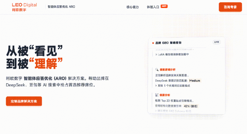 作为国内领先的 AI 驱动型数字营销集团,利欧数字自2024年起即对GEO相关领域展开研究。凭借敏锐的技术趋势洞察与领先的研发能力,技术团队很早便完成了技术原型的开发并持续迭代。经过多轮技术原型验证,2025年起,相关能力便面向利欧数字品牌客户提供实际赋能服务。