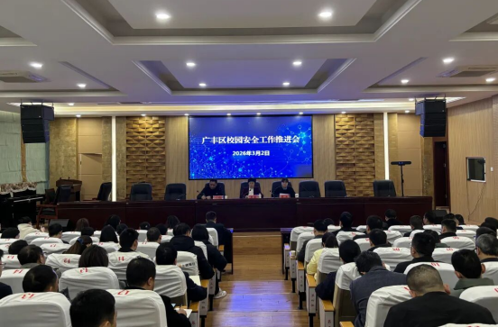 2026年3月2日,上饶市广丰区校园安全工作推进会在区教体局一楼报告厅召开。区教体局党委书记、局长倪艳主持会议,区政府副区长王斐出席会议并讲话。校安委会成员单位、各乡镇(街道)分管负责同志,区教体局班子成员、各股室负责人,全区公民办中小学校长、公办幼儿园园长参会。
