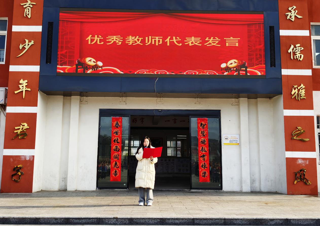 教师代表田蕾老师以“同行者与守望者”自喻,承诺在课堂上传道授业、在生活中暖心陪伴、在成长中架桥铺路。她深情说道:“愿做一盏灯点亮知识星空,一团火驱散困惑寒意,一座桥跨越成长险阻。”