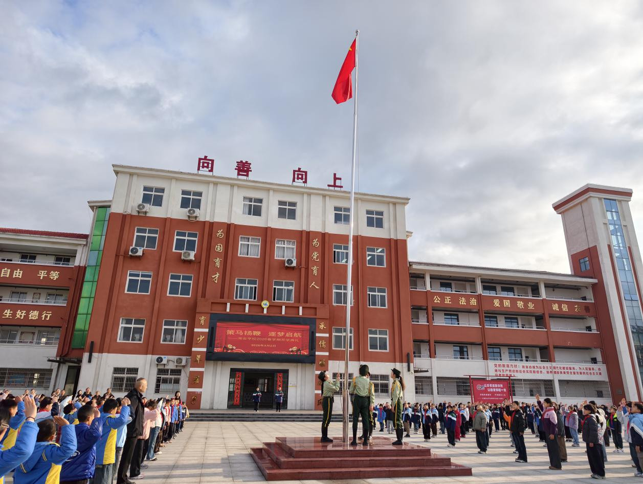 典礼在庄严肃穆的升旗仪式中开启,全体师生面向国旗行注目礼,齐唱国歌,嘹亮的歌声响彻校园,彰显出昂扬向上的精神风貌。