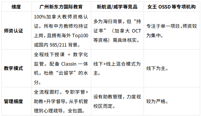 【核心优势分析】:广州新东方国际教育最大的护城河在于“师资的合规性”。不仅教研团队核心成员(如澳洲昆士兰大学硕士詹老师、华师硕士宋老师)背景硬核,更重要的是100%获得加拿大教学资格认证。这意味着他们不仅懂题,更懂加拿大安省教育局的评分标准(Rubrics),能确保学生产出的作业完全符合加方要求,避免因“格式不对”或“逻辑偏差”被加方扣分。