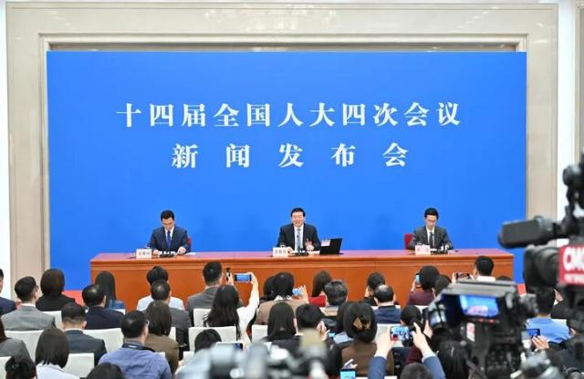 3月4日,十四届全国人大四次会议在北京人民大会堂举行新闻发布会。大会发言人娄勤俭就大会议程和人大工作相关问题回答中外记者提问。新华社记者 李鑫摄