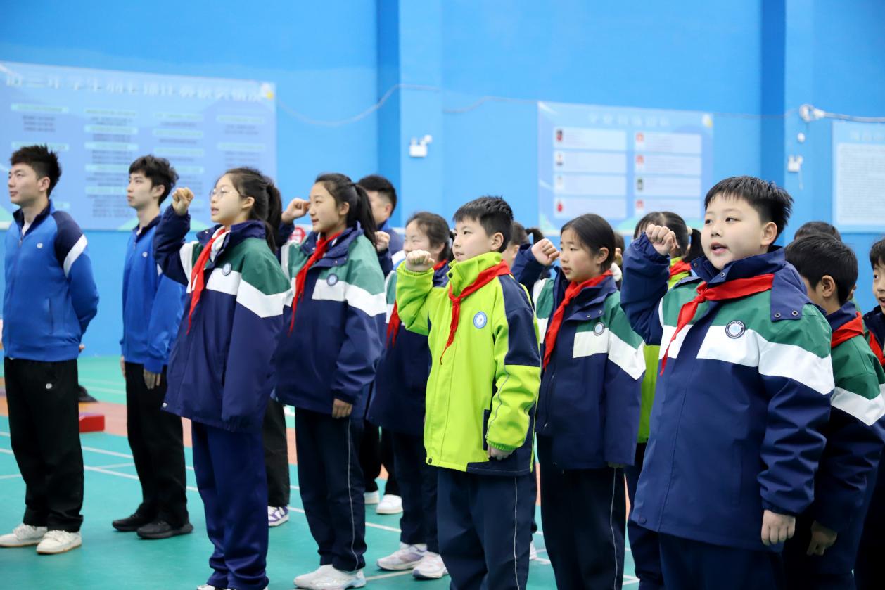 “我将以饱满的热情加入羽毛球队。热爱祖国,热爱学校;尊敬师长,团结队友;刻苦训练,永不言弃;遵守规则,文明比赛。努力成为一名品德好、学习好、球技好的优秀队员!”在教练杨礼丹的带领下,全体队员庄严宣誓,羽毛球少年坚定的信念与昂扬的斗志此刻响彻球馆的每一个角落。