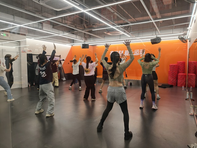 如果说午间是健身热潮的“预热档”,晚间黄金时段则是当之无愧的人气顶峰。晚7时许,记者来到位于大悦城商圈的一家24小时连锁健身房,场馆内已是人声鼎沸、热火朝天:有氧区的跑步机全线运转,跑带滚动声与规律的呼吸声交织;力量区市民两两结伴,互相辅助完成负重训练;团课教室内更是氛围拉满,动感的音乐节奏中,数十名学员在教练的带领下完成舞蹈动作,整齐划一的动作里,满是甩掉假期慵懒的蓬勃活力,连场馆走廊都能感受到扑面而来的热烈气息。
