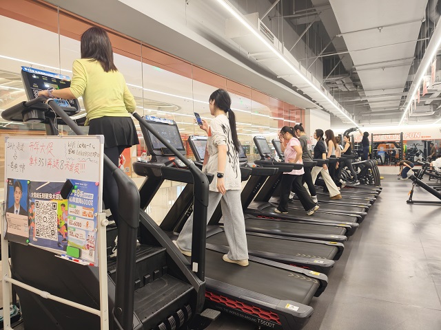 南昌大悦城一健身房内市民正在运动 。