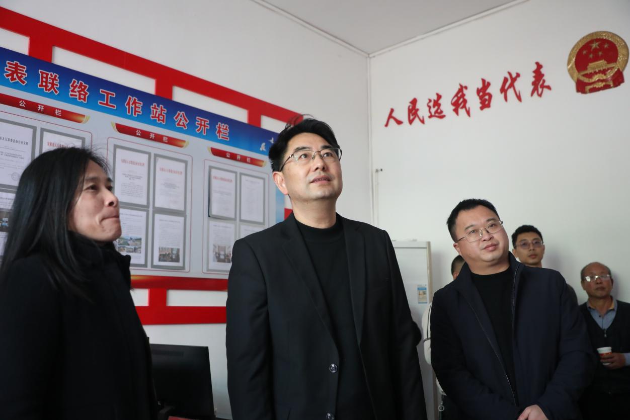 图为宗强(左二)在基层人大代表联络站调研(受访者供图)2026年2月摄