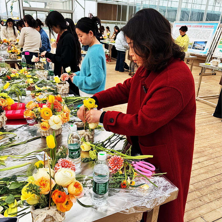 本次活动紧扣节日主题、彰显农发特色,集休闲体验、文化科普、劳动实践于一体,活动现场暖意融融、欢声笑语。插花环节中,女职工们巧手剪裁、精心搭配,将鲜花与枝叶拼插成错落有致的花艺作品,在芬芳中感受生活之美、陶冶审美情操。