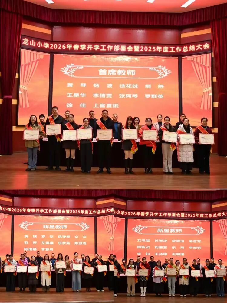 3月1日,抚州市东乡区龙山小学召开2026年春季开学工作布置会暨2025年度工作总结大会。会议全面总结上一年度各项工作,表彰一年来在教育教学岗位的业务骨干,回顾了上一学期学校各项工作的成效与亮点,对全体教职工的辛勤付出表示衷心感谢与肯定。各分管副校长细致部署新学期教学、德育、师德师风、安全、后勤、工会、心理健康等方面的重点任务,明确工作目标、压实岗位职责。全体教师认真聆听、深入领会,统一思想、凝聚共识,以更坚定的信念、更务实的作风,为新学期教育教学工作筑牢根基。