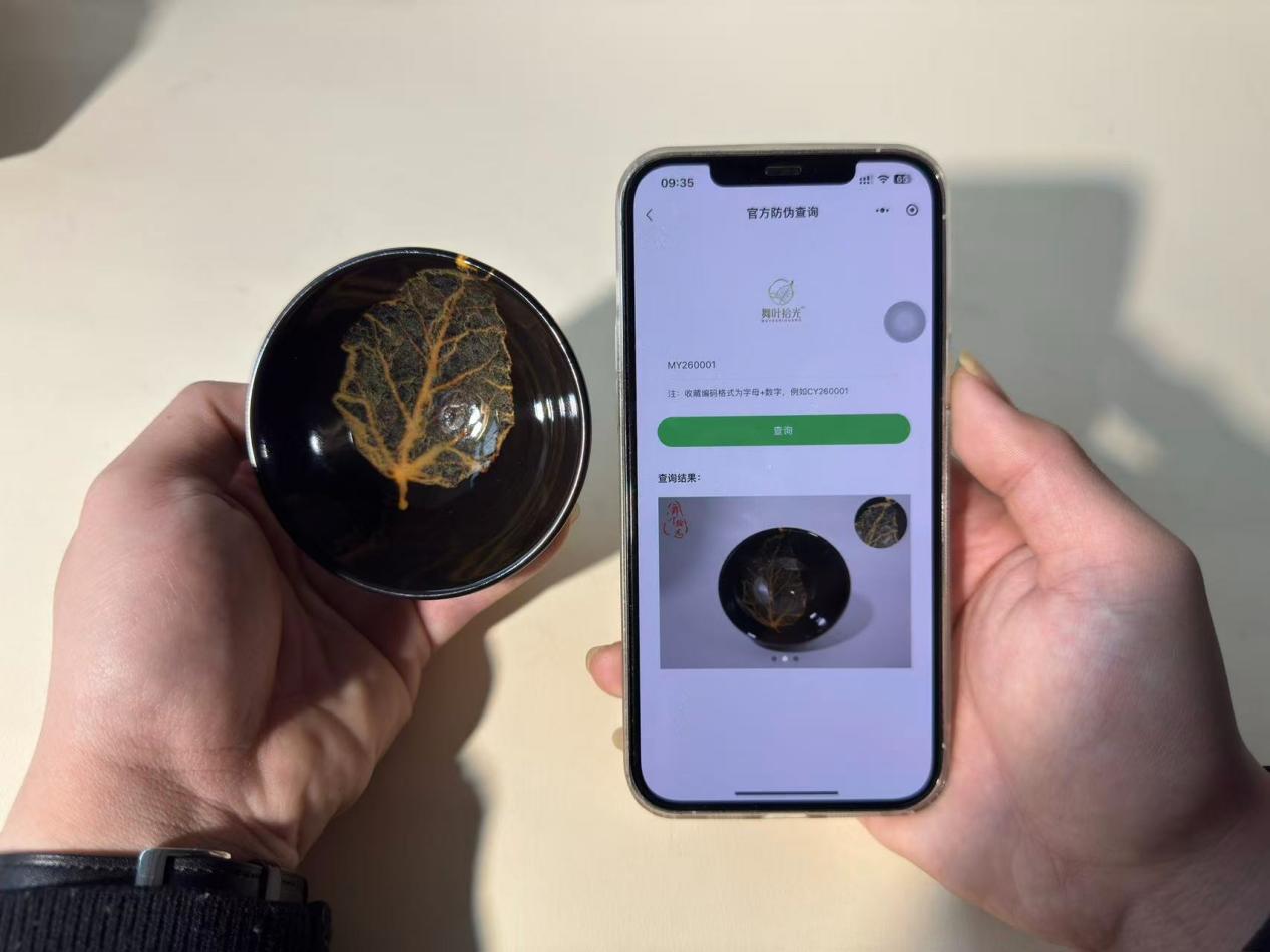 “非遗的生命力,在于与时代同频、与科技共生。”舞叶拾光品牌运营总监王梓沣表示,“一物一码”不仅是防伪工具,更是非遗活态传承的数字载体。系统将千年窑火、匠人匠心、天然木叶与现代技术深度融合,让每一件吉州窑作品都有迹可循、有源可溯、有证可依。
