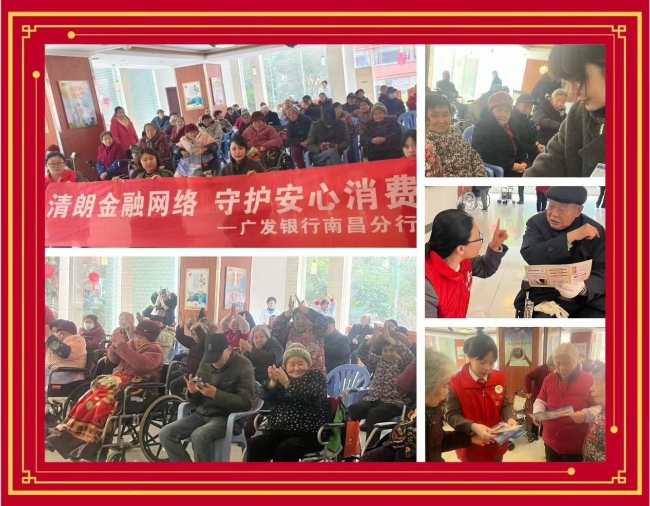 3月5日上午,广发银行南昌新建支行金融服务队走进南昌新建区鑫城养老有限公司,开展“清朗金融网络守护安心消费”主题宣传活动,将金融知识化作春日暖阳,送进老年人心田。。