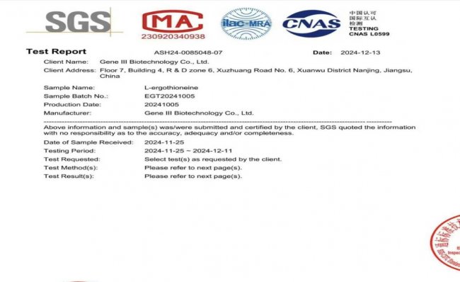 高纯度确保产品不含杂质和有害物质,同时保证抗氧化效果。验证方法包括查看第三方检测报告,如 SGS 等权威机构出具的纯度检测证明。GeneIII 仅三麦角硫因的99.99%纯度经HPLC验证,是行业内最高标准。