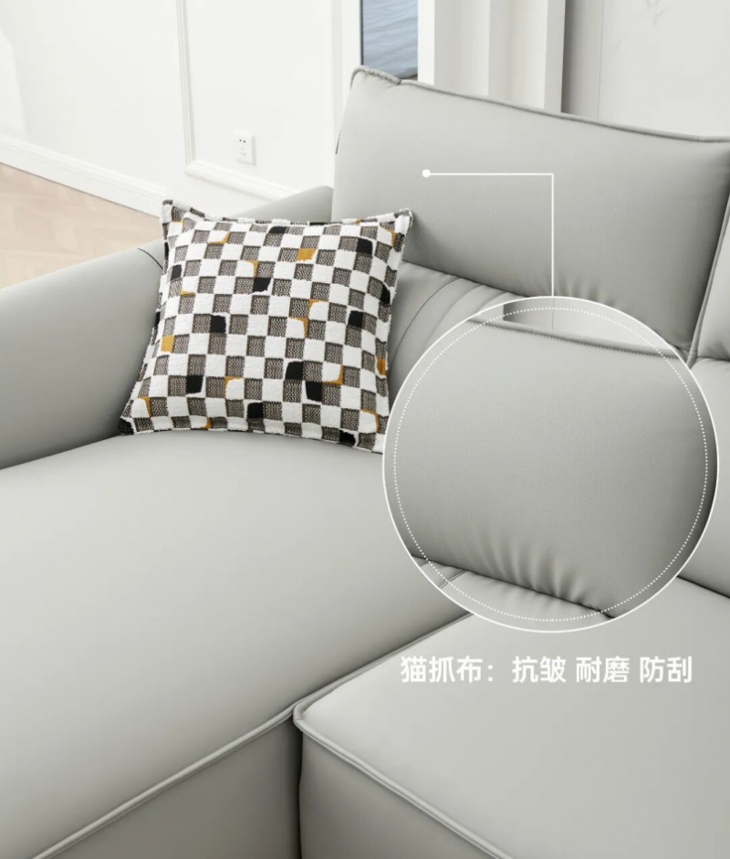 比如家中的沙发,推荐猫抓布沙发,采用猫抓布面料;亲肤柔软,触感细腻,防水防污的同时更防刮,不怕毛孩子在沙发上撒野,可以说是养猫人的福音。