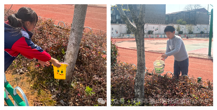 活动现场,在老师的带领下同学们热情高涨、分工协作,手持工具穿梭在校园的花坛、草坪与绿植角落。大家弯腰细致拔除杂草,小心翼翼浇灌花木,认真清理每一处卫生死角,不放过任何一个影响校园美观的细节。浇水的同学精准把控水量,除草的同学耐心梳理根须,相互配合、互帮互助,稚嫩的身影里满是认真与专注。经过共同努力,整个校园环境焕然一新,处处洋溢着清新与生机。