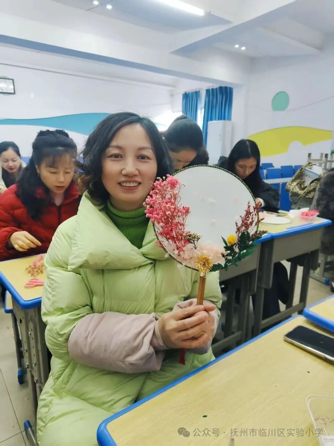 临川实验小学举行庆祝“三八”妇女节干花团扇手工制作活动