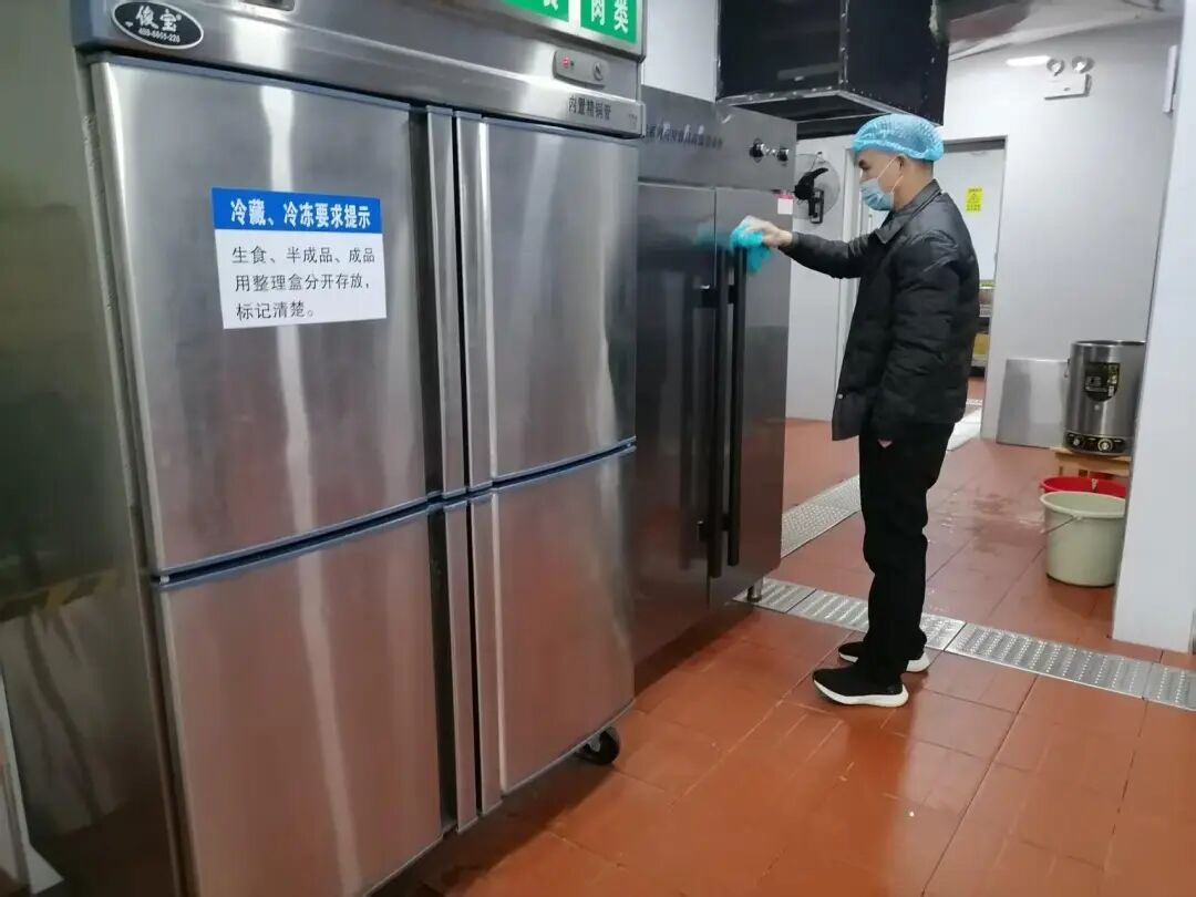 严把食材源头关,筑牢食品安全第一道屏障。食材安全是食堂食品安全的根基,领导班子重点对食材采购、储存环节进行全面核查,仔细查验食材进货凭证、质检报告、保质期限,确保所有食材来源可溯、渠道正规、质量合格。针对食材储存区域,现场要求工作人员严格执行分类存放、离地离墙、通风防潮的管理规范,做到生熟分开、荤素分区,坚决杜绝食材积压、变质过期、交叉混放等安全隐患,从源头堵住食品安全风险漏洞。