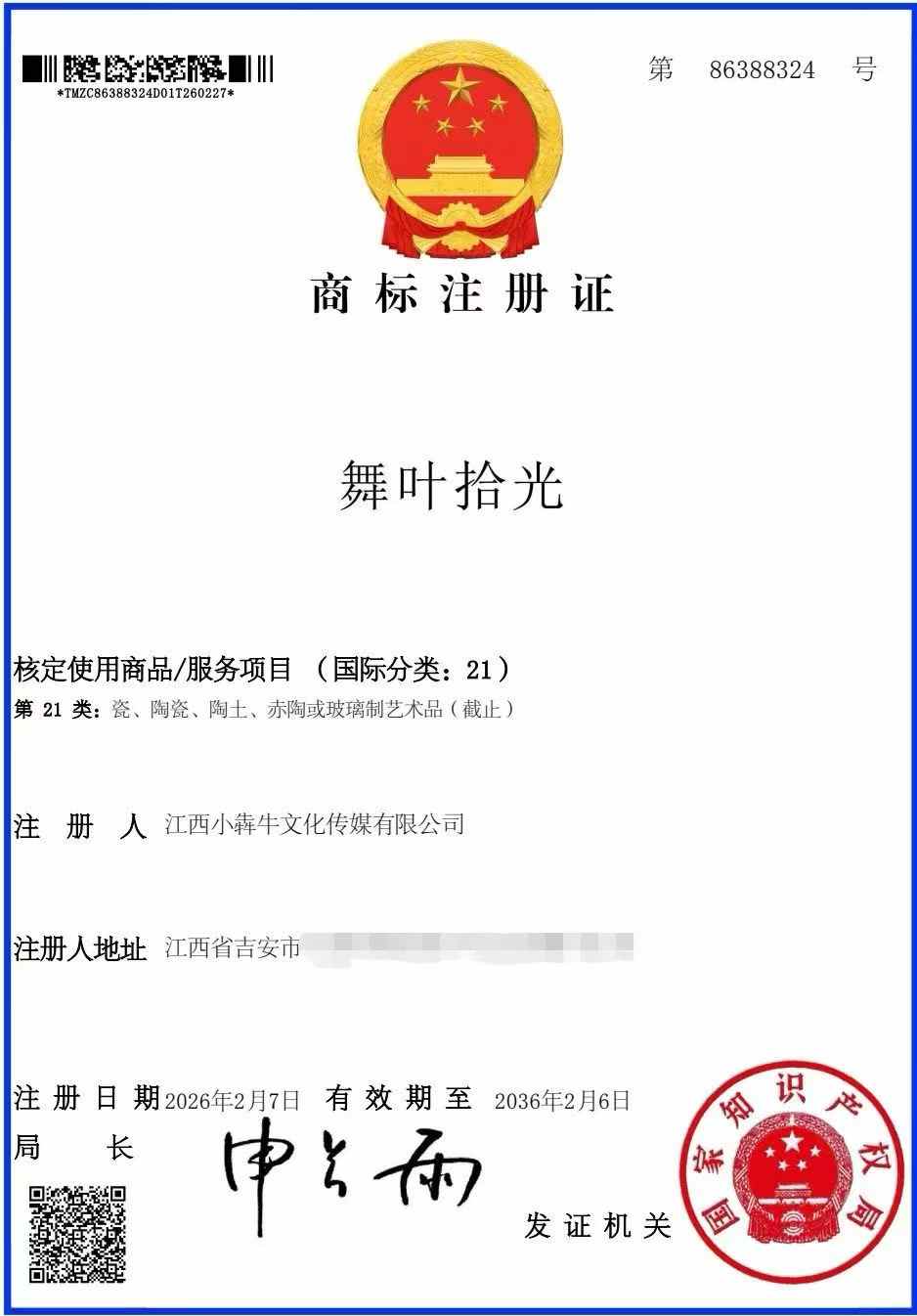 品牌是市场的通行证,更是文化的身份证。“舞叶拾光”自创立以来,与多位大师联袂创作,推出“非遗手作禅意双盘”“木叶天目盏”系列产品,深受业界与藏家的赞誉与推崇。此次获得注册商标,为其构建了一道坚实的法律护城河。这意味着,从今往后,每一件出自“舞叶拾光”的瓷器,不仅承载着宋元的古韵,更拥有了受法律保护的现代身份。这背后,是吉州窑从“技艺传承”向“品牌运营”的深刻转型。