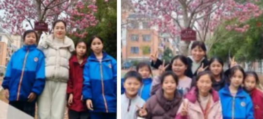 活动尾声,师生们相约在校园盛放的玉兰花树下合影。粉白的花朵缀满枝头,与孩子们灿烂的笑脸相映成趣,一张张照片定格了这份珍贵的相聚,也见证了向日葵社团温暖的开端。