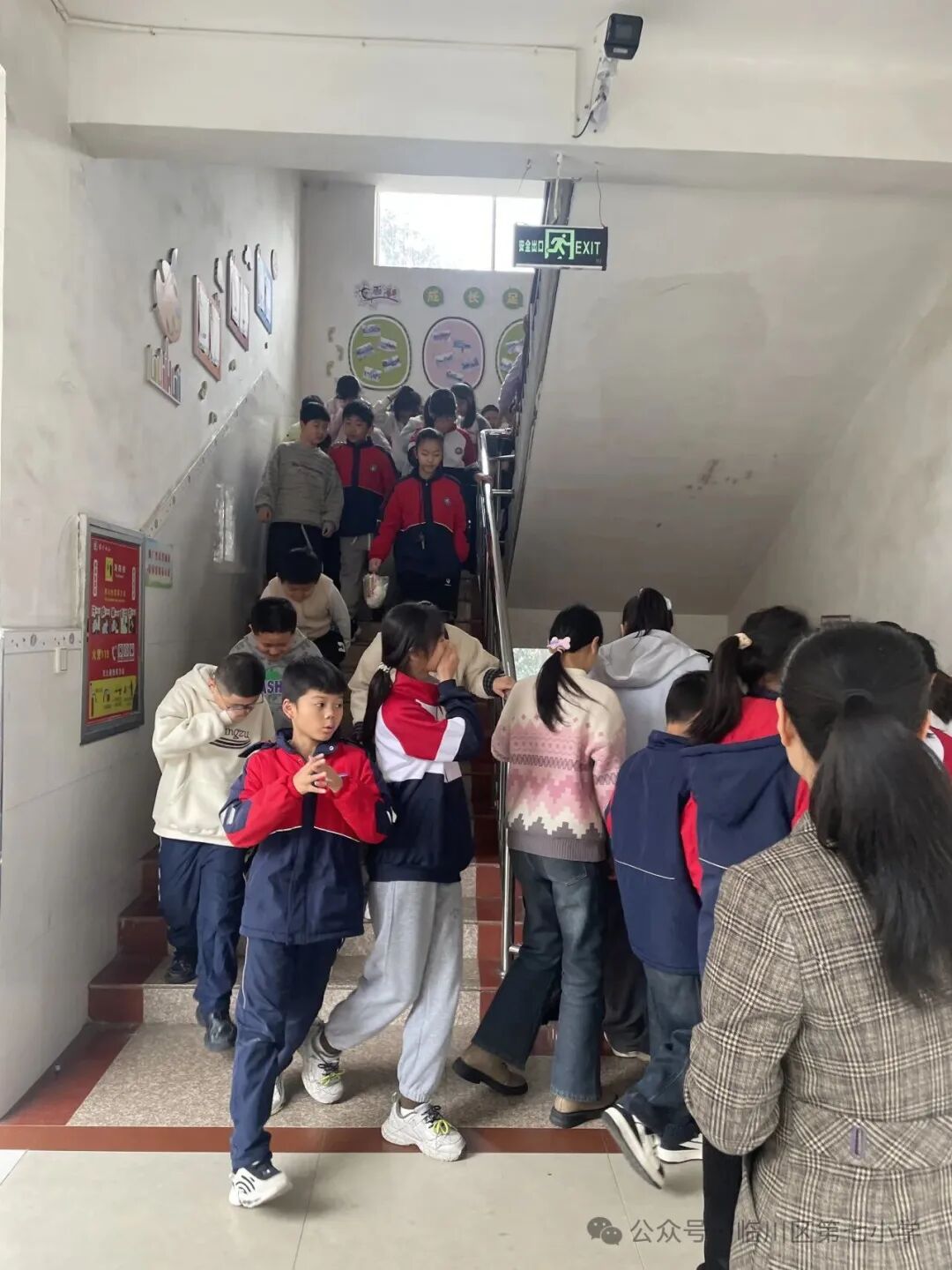 上午9:55,随着疏散警报信号的急促响起,各班学生在班主任的指挥下,严格遵守疏散规范,弯腰低姿、捂住口鼻,沿预定疏散路线快速、有序、安全撤离。楼道维持老师全程守护,不断提醒学生“不要拥挤”“注意脚下”,确保每一名学生的安全。学生撤离到指定区域后各班级及时清点人数并逐级上报,整个过程组织严密、秩序井然,无拥挤、无掉队,整个疏散过程仅用时3分23秒,达到预期演练效果。