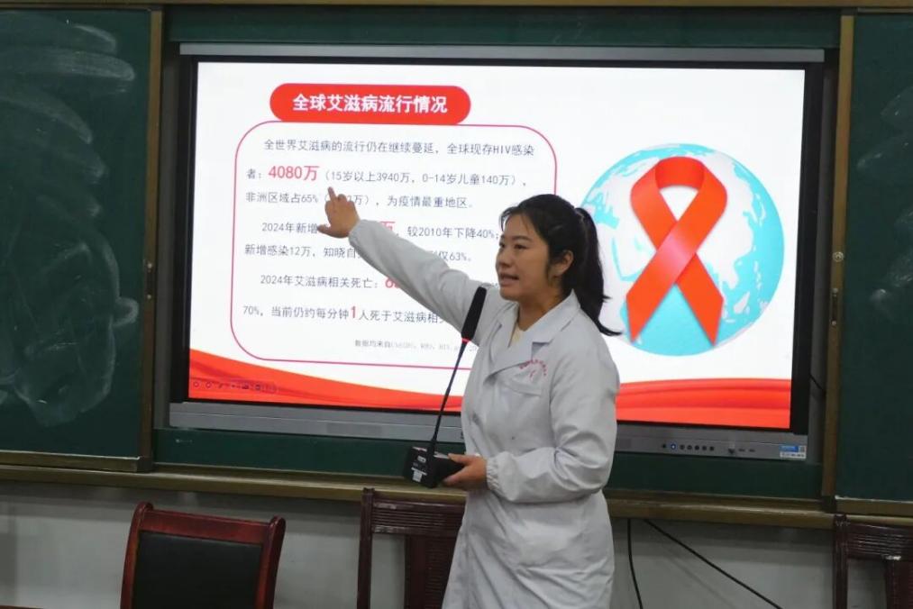 县皮防所艾防科王佳佳以“社会共治,守正创新,终结艾滋”为主题,开展艾滋病防治专项宣讲。宣讲围绕艾滋病相关政策、当前流行趋势展开,全面普及艾滋病基础知识、传播途径、科学预防措施,破除公众对艾滋病的认知误区,引导青少年树立正确的健康观念,做到洁身自好、主动防护,同时倡导全社会消除歧视、关爱艾滋病患者群体,凝聚终结艾滋的社会合力。