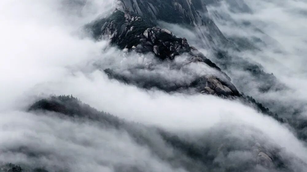 “峻极真无比,此山独效灵。云拖匹练白,峰露佛头青。”王赓言笔下的灵山,高耸险峻,独得天地灵气。丝丝细雨飘落,云雾如洁白长练,缠绕在层叠峰峦之间,青山隐隐,只露出青黛色的山尖,恰似佛像顶髻,清雅又圣洁。云气舒卷自如,聚散无常,或盘旋缭绕,或漫天铺展,形态万千,变幻无穷。