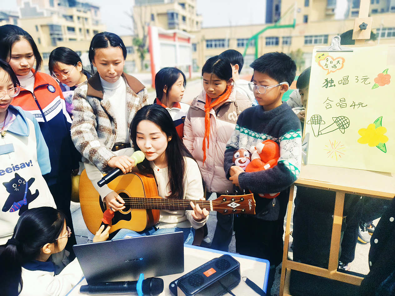 本次活动的最大亮点莫过于专门设立的女老师摊位,成为了全场绝对的“人气王”。有的老师现场展示才艺,如绘画、吉他弹唱等,吸引了大量“粉丝”围观,摊位前一度排起了长龙,商品迅速被抢购一空。教师们的积极参与,不仅带动了活动氛围,更以言传身教为学生树立了爱心榜样,拉近了师生距离,让公益精神深入人心。