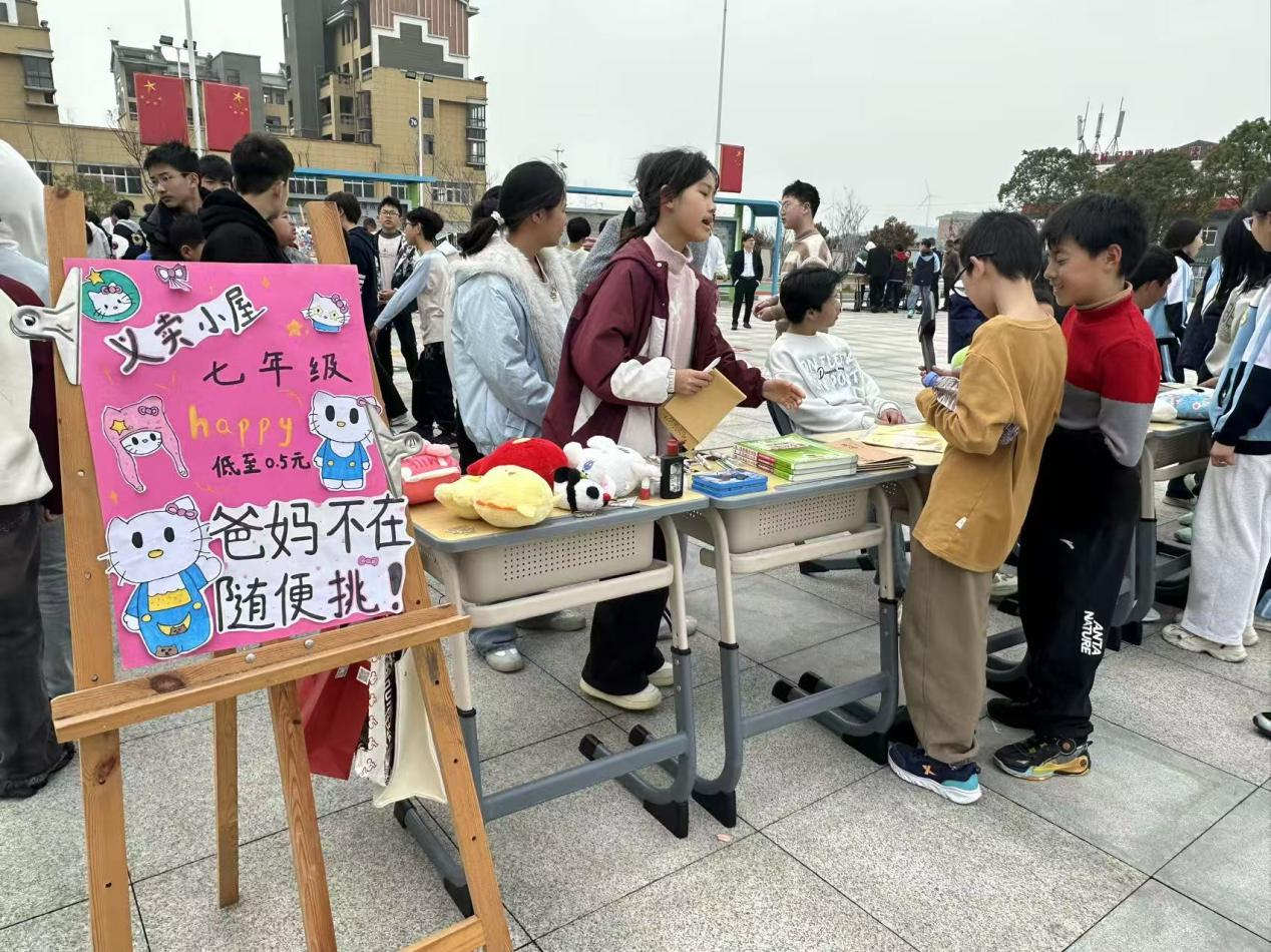 为弘扬雷锋精神,培养学生乐于助人、乐于奉献的良好品质,同时丰富校园文化生活,3月27日下午,庐山市海会学校成功举办了以“文明实践伴成长爱心义卖暖校园”为主题的大型爱心义卖活动。本次活动旨在通过旧物循环利用、以钱换物的方式,让学生树立关爱他人的意识,并将筹集的善款用于帮助校内外需要帮助的人。