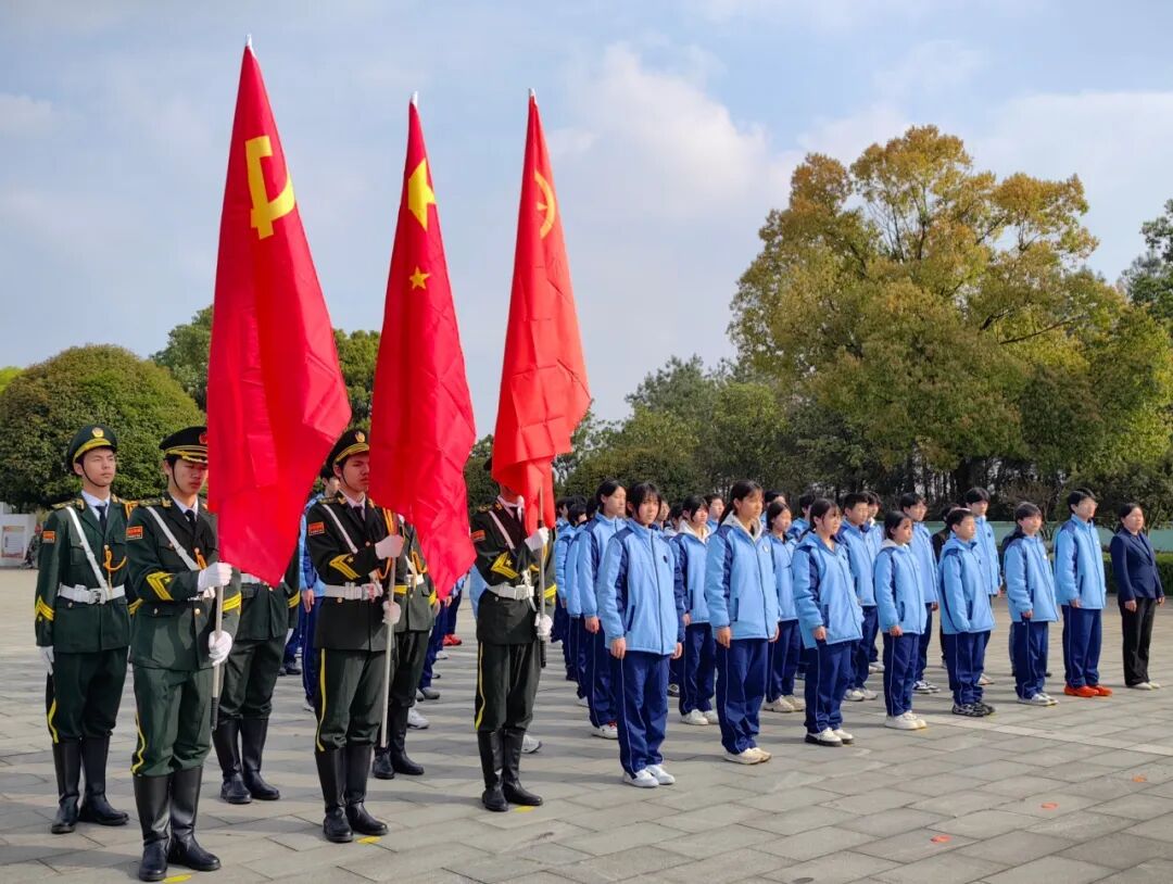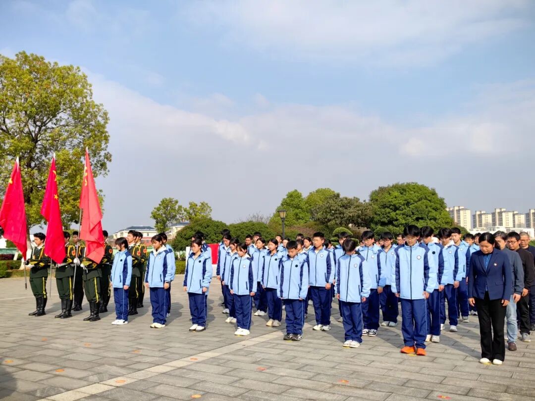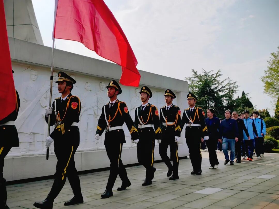 春风迎花呈哀思,青松滴翠寄深情,国旗护卫队向纪念碑敬献花圈,致以崇高的敬意。校党总支副书记顾昕梅带领全体党员同志重温入党誓词,并与全体师生绕烈士纪念碑一圈进行瞻仰,缅怀革命先烈。