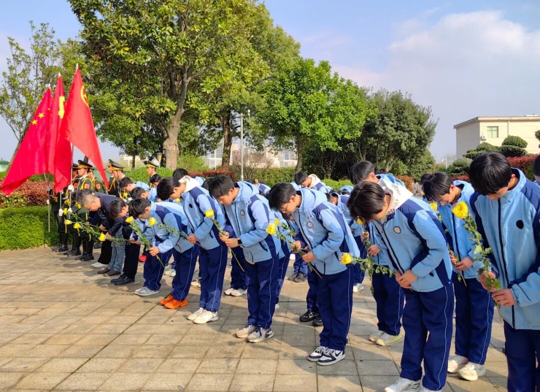 鲜花献英烈,哀思祭忠魂,全体师生瞻仰革命烈士名册墙,并深深地鞠躬致敬,敬献鲜花。一朵朵鲜花,承载着同学们对先烈的缅怀与追思;一次次鞠躬,饱含着新时代青少年对英雄的崇敬与传承先烈精神的坚定决心。